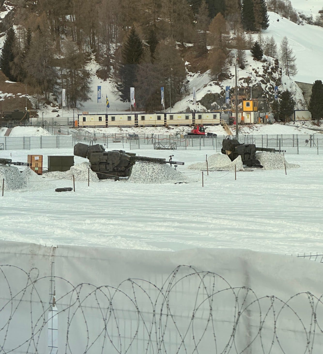 Given 50+ global leaders (presidents, PMs, Finance Ministers, Royal Families, etc.) are in town for the week, it makes sense that things should be safe. At the entrance of the town, there is a full artillery and I believe an anti-air system setup. This is a normal thing to see in Switzerland given how many military bases are scattered within the country’s mountainous terrain. You can expect to see Swiss military on public transit almost everyday throughout the country.
